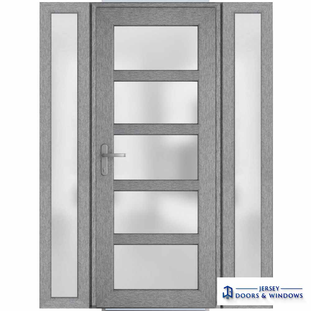 The exterior design boasts five frosted glass panels, creating a modern and stylish look that will enhance the curb appeal of any home. The grey ash color provides a neutral and contemporary feel, perfect for those who want a sophisticated entrance that blends seamlessly with their home’s exterior.