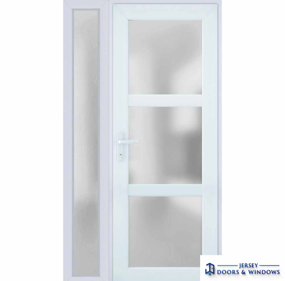 The exterior design features three frosted glass panels, creating a modern and stylish look that will enhance the curb appeal of any home. The white silk color provides a fresh and clean feel, perfect for those who want a timeless entrance that complements their home’s exterior.