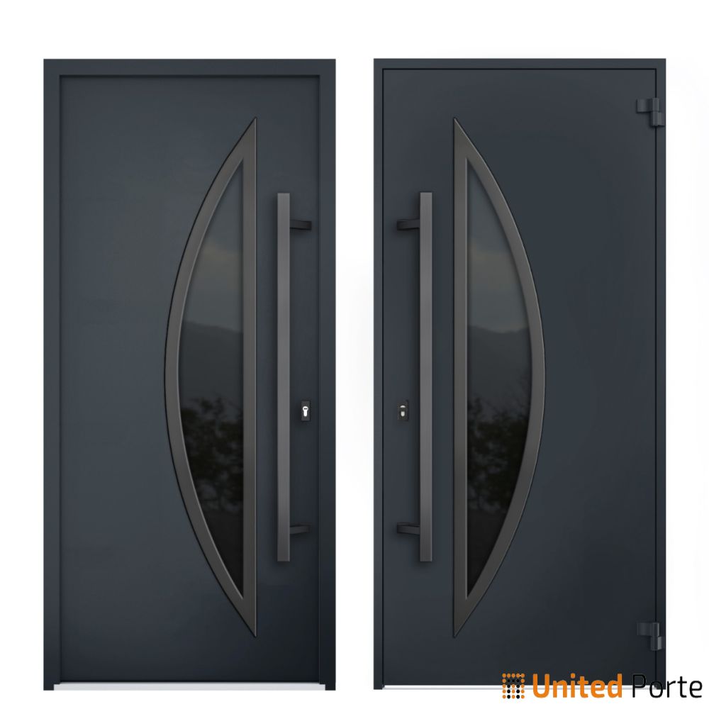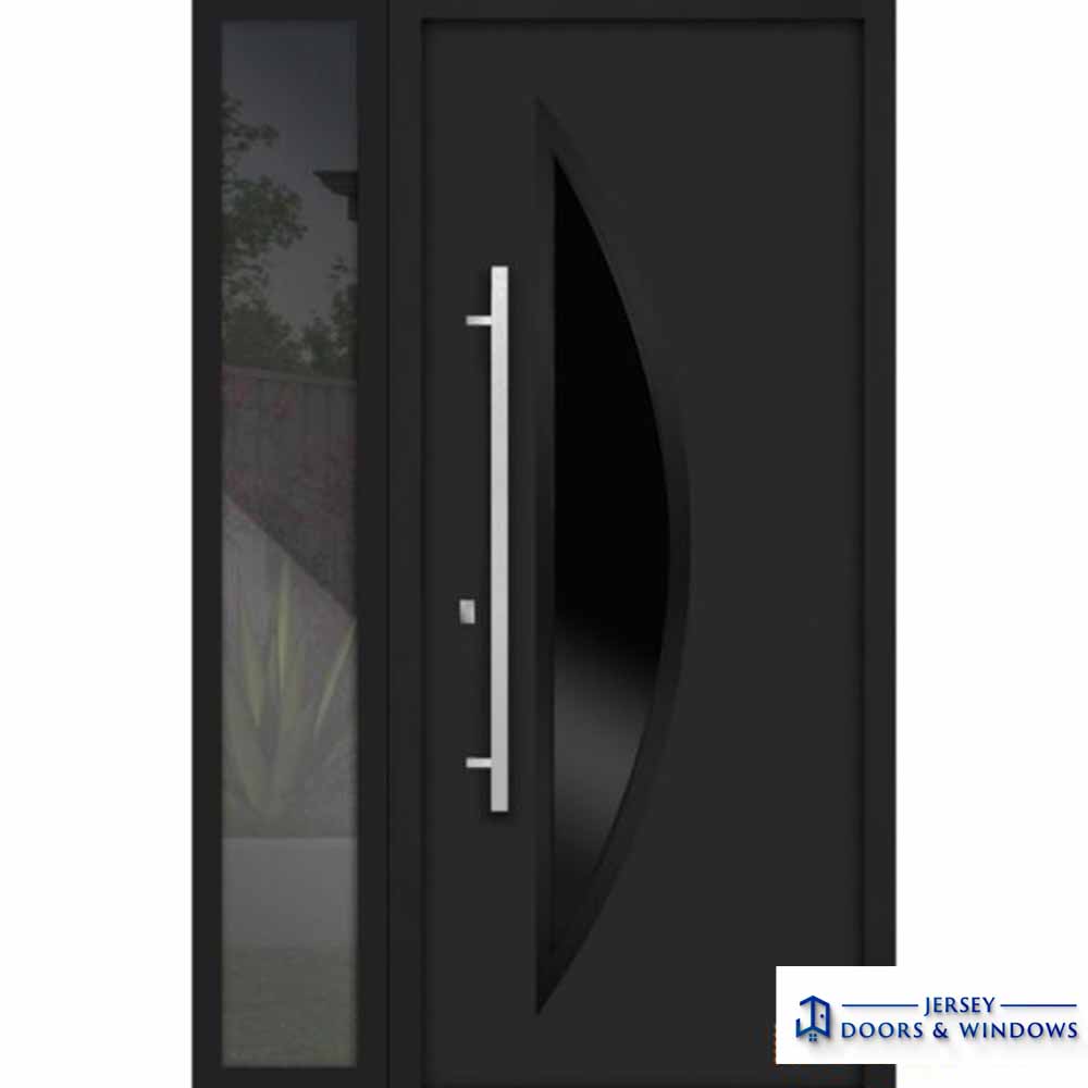 Introducing the Deux collection of modern exterior entrance doors in a sleek black enamel color. These doors are constructed from a single sheet of metal with a sturdy metal frame and threshold, ensuring both durability and security for your home.