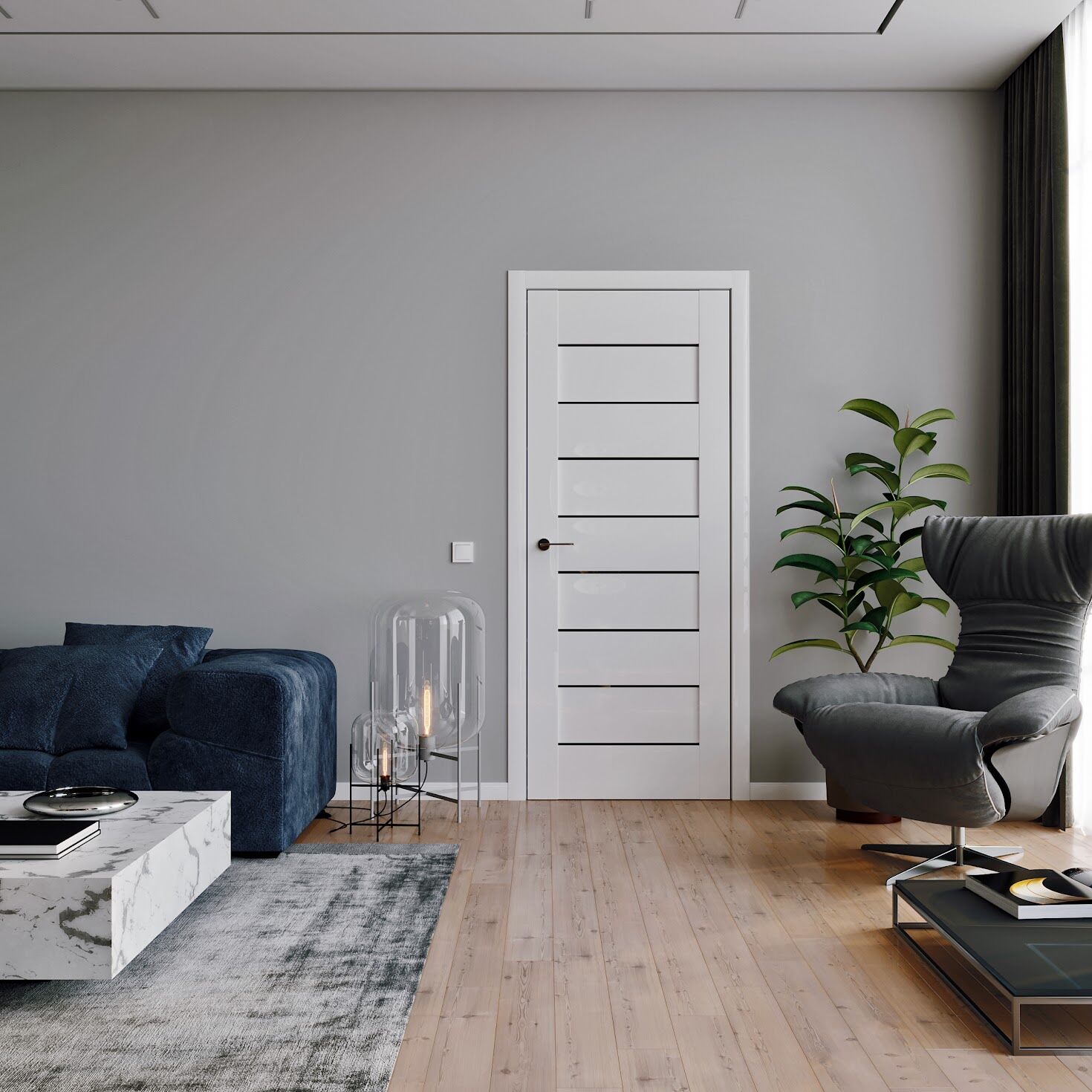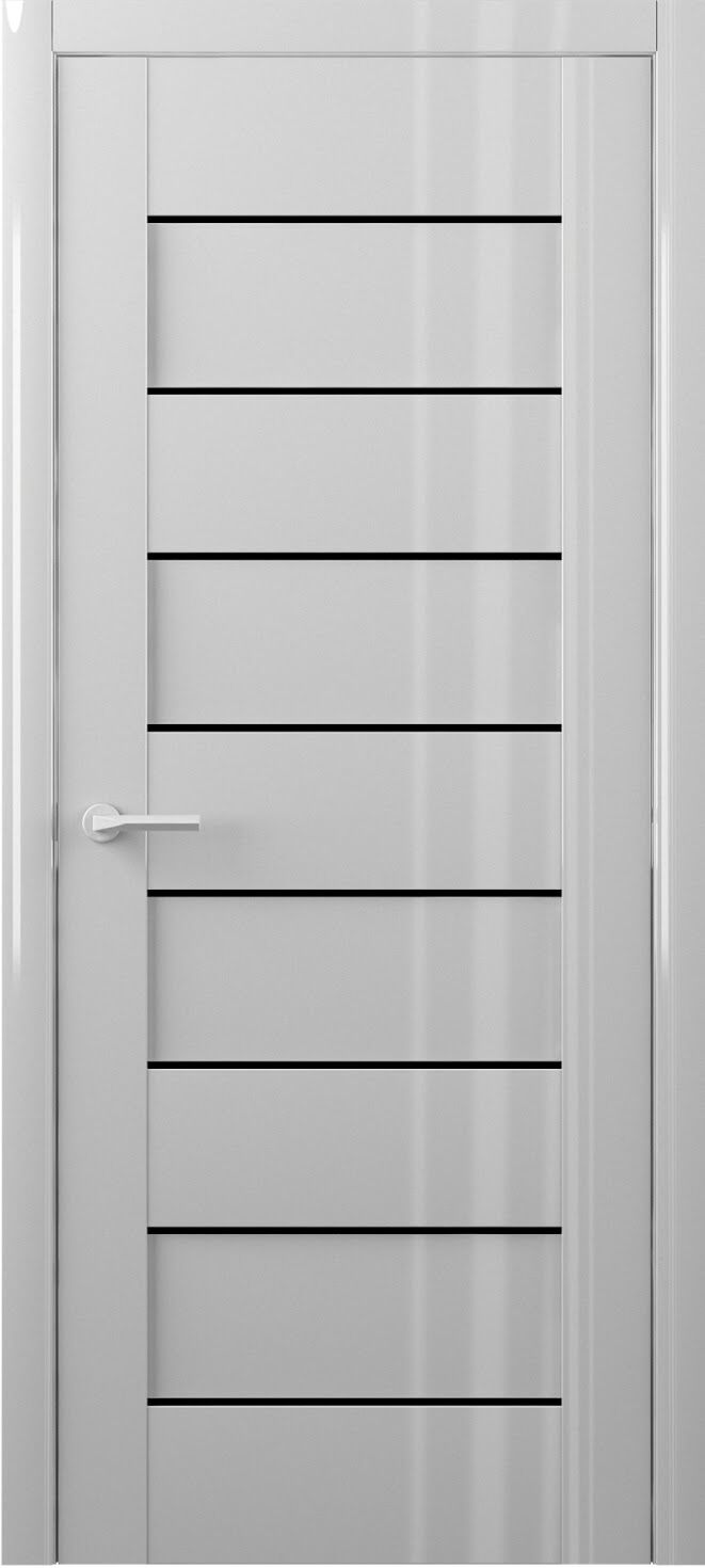 Invest in an interior door design that makes a bold statement with a simple vocabulary. This modern interior door is mysterious and dark with a sleek black walnut finish and maximum gloss. Ten vertical lines draw linear interest in parallel with the slim, heavy-duty frame, pulling the eye upward to extend your space and create the illusion of higher ceilings. Within such a luxurious, dark wood finish, the true depth and presence of the linear accents are found through shadow as light nestles into the vertical accents that are carved into the surface of the wood. This modern door capitalizes on simplicity.