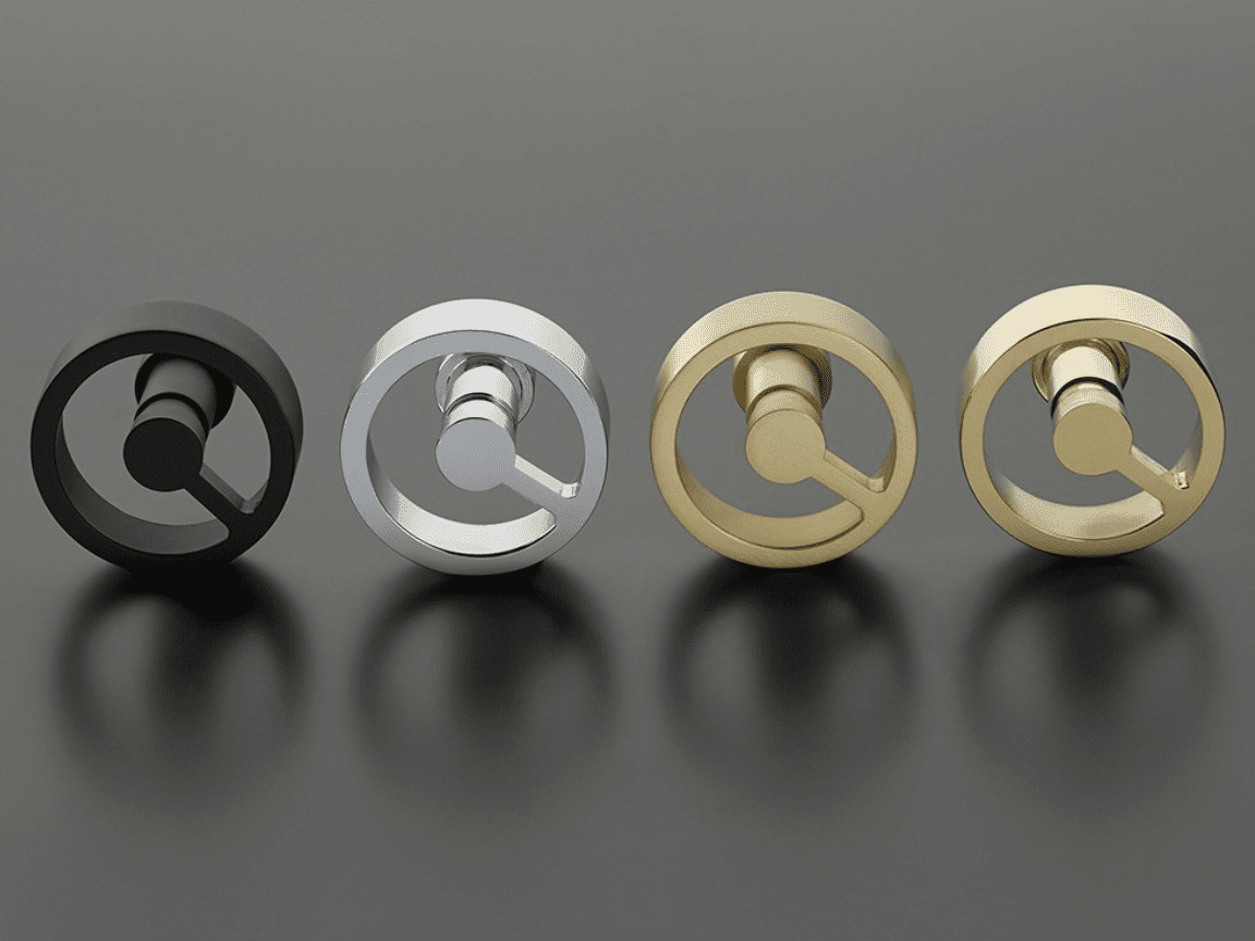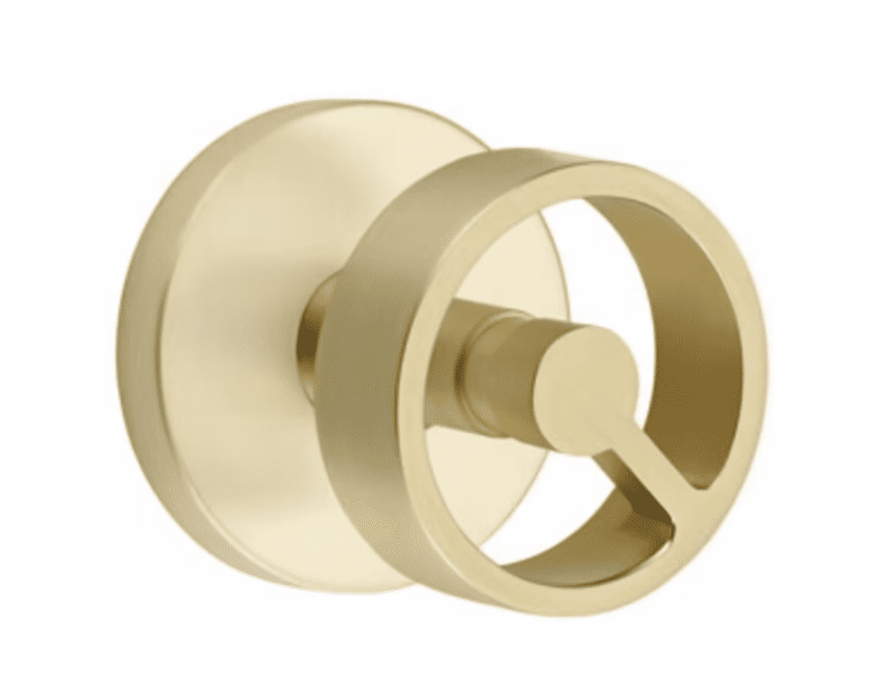 The Brass Modern Collection’s knob/lever handles are supported by springs mounted behind the rosettes and side plates, which return the handles back to the rest position and prevent lever sag. The latches are heavy-duty die-cast construction, with strong internal springs, solid brass nose bolts, and sintered metal cams. A plastic bushing located in the joint between the handle and the rosette ensures a friction-free wear surface, preventing metal from bearing on metal and providing smooth, long-lasting operation. Handles are positively connected to rosettes with a permanent clip. Each has a set screw which eliminates “handle wobble” when tightened. Emtek’s threaded tubes are machined brass to ensure good threads and prevent corrosion.