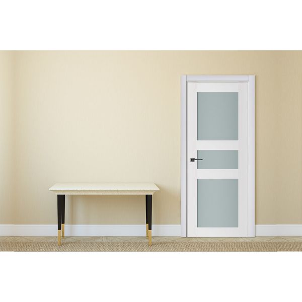 Maintain an open, flowing atmosphere in your home or office, even with closed doors. The Triplex line of modern interior doors are made with wood, MDF, and fused triplex glass, which has a frosty finish for the perfect balance of transparency and privacy. Weighing approximately 70 pounds each, the glass interior doors swing with a high-quality, weighted feel and offer just the right amount of soundproofing.